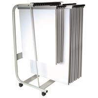 Mobile hanger stand perfect for transportation. 4 Castors allow for easy transportation. Quality metal construction is long lasting. Capacity for up to 25 hangers. Accepts both A0 and A1 hangers (sold separately). Dimensions: 685x660x1365mm.