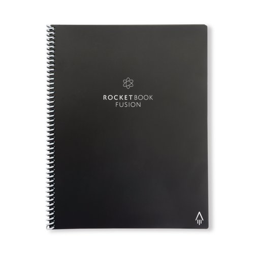 - The Rocketbook Fusion is designed for the classroom, office and personal mission. The Fusion is a reusable pen and paper notebook with seven different page templates that connect to cloud services. With 42 futuristic pages including a calendar, planner, goal template, ideas list, dot-grid and lined pages. Made with patented reusable technology, the synthetic paper allows you to write smoothly with any Pilot FriXion pen, marker or highlighter, then wipe clean with a damp cloth to reuse again. The free Rocketbook app allows you to save notes, plans, lists, and big ideas to the cloud for organisation. Supplied complete with a FriXion pen and microfibre cloth.