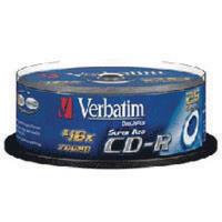 Verbatim CD-R AZO Crystal. Up to 100 years archival life. Crystal clear lacquer surface to provide extra hard protection. Can be written on. Perfect for sharing computer data, home videos, photos and music. Capacity: 700MB. Speed: 52x. Spindle of 25.