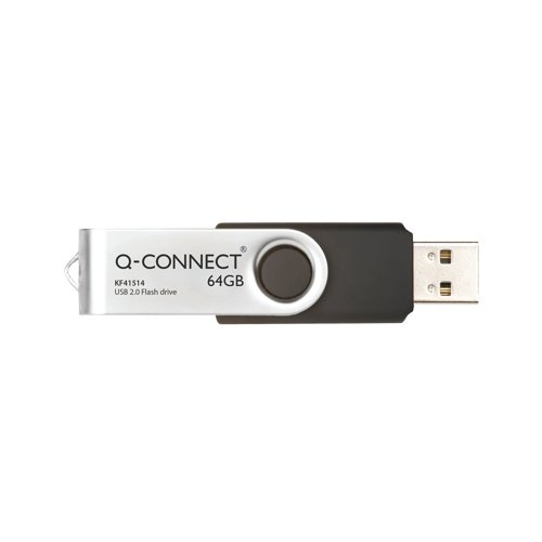 - The compact and stylish Q-Connect USB 2.0 Swivel Flash Drive is an economical choice for file transfer and backup. It features a convenient 360 degree swivel casing to protect the USB connector from damage - no cap to lose. There's also a lanyard hole for easy portability. Suitable for Windows and Mac computers, this drive contains 64GB of storage for documents, video, photos and more.