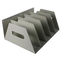 Rigid and durable rack for housing lever arch files directories ring binders etc. Manufactured from Grey powder coated steel. Fixed dividing plates have rounded corners. Available in 5 lever arch capacities.