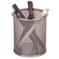 Q-Connect Mesh Pen Pot. Pen pot for pens pencils highlighters and rulers. W86 x D86 x H105mm. Colour: Silver.