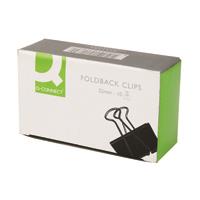 Q-Connect Foldback Clips manufactured from high quality steel. Handles fold flat for space saving filing. Capacity - 32mm.