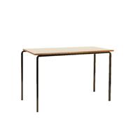 MDF edged classroom table with rounded corners and bevelled edges for added safety. Laminated on both sides for durability. Lacquered finish. Crush bend construction. Dimensions: W1200 x D600 x H760mm. Colour: Beech with black frame. Pack of 4 tables.