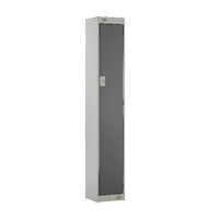 Single door locker suitable for use in the office health education and dry area changing rooms. Fitted with deadlock and supplied with 2 keys per lock. Complete with hat shelf and double coat hook. Ventilated. H1800 x W300 x D300mm. Colour: Dark Grey.
