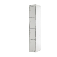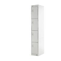 Four door locker suitable for use in the office health education and dry area changing rooms. Fitted with deadlock and supplied with 2 keys per lock. Four compartments. Ventilated top and bottom. H1800 x W300 x D300mm. Colour: Light Grey.