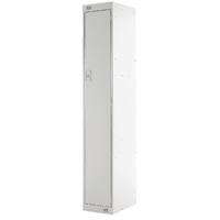 Single door locker suitable for use in the office health education and dry area changing rooms. Fitted with deadlock and supplied with 2 keys per lock. Complete with hat shelf and double coat hook. Ventilated. H1800 x W300 x D450mm. Colour: Light Grey.