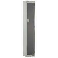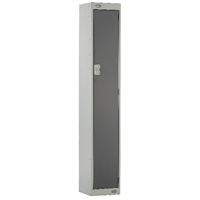 Single door locker suitable for use in the office health education and dry area changing rooms. Fitted with deadlock and supplied with 2 keys per lock. Complete with hat shelf and double coat hook. Ventilated. H1800 x W300 x D450mm. Colour: Dark Grey.