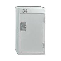 Quarto locker suitable for use in the office health education and dry area changing rooms. One compartment. Fitted with deadlock and supplied with 2 keys per lock. Ventilated at the top. H511 x W300 x D450mm. Colour: Light Grey.