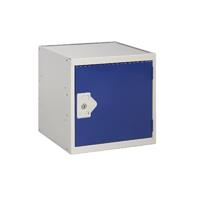 Cube locker suitable for use in the office health education and dry area changing rooms. One compartment. Fitted with deadlock and supplied with 2 keys per lock. H300 x W300 x D300mm. Colour: Blue.