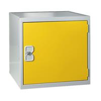 Cube locker suitable for use in the office health education and dry area changing rooms. One compartment. Fitted with deadlock and supplied with 2 keys per lock. H300 x W300 x D300mm. Colour: Yellow.