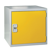 Cube locker suitable for use in the office health education and dry area changing rooms. One compartment. Fitted with deadlock and supplied with 2 keys per lock. H450 x W450 x D450mm. Colour: Yellow.