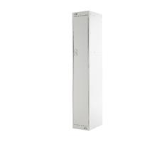 Single compartment solid door locker suitable for use in health education and dry area changing rooms. Fitted with deadlock and supplied with 2 keys per lock. Hat shelf and double coat hook. Ventilated. H1800 x W300 x D450mm. Colour: Blue.