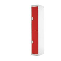 Double compartment solid door locker suitable for use in health education and dry area changing rooms. Fitted with deadlock and supplied with 2 keys per lock. Ventilated at the top and bottom.H1800 x W300 x D450mm. Colour: Red.