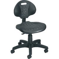 Jemini Factory Chair ergonomically shaped in soft easy wipe polyurethane. Gas seat height adjustment. Ideal for warehouses factories labs and more. Seat dimensions W470 x D435 x H445-580mm. Back dimensions W415 x 310mm. Black. Non-Returnable.