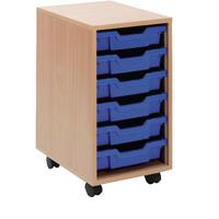 Jemini Mobile Storage Unit. Hardwearing unit manufactured from 18mm beech carcass with solid backs for extra strength and integral castors for ease of use. Supplied complete with 6 Blue Trays. W370xD495xH650mm. Non returnable.