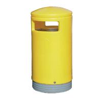 Removable body for ease of emptying. Hooded top prevents ingress of rainwater. Complete with inner liner lock and base. Capacity 75L. H1000x485mm. Optional concrete base 3 parts. Optional fixing plate. Yellow. Non returnable.