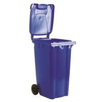 Tough and durable bin made from UV stabilised polyethylene for longer life. 2 wheel bin. Capacity 360 litres. W620 x D860 x H1070mm. Blue. Non returnable.