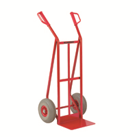 Recessed crossbars for carrying sacks but equally suited to handling cases etc. Knuckle protection handgrips. H1145 x W545mm. Footiron length - 200mm. 260mm diameter pneumatic tyred wheels. Weight - 12.5kg. Capacity - 250kg. Non returnable.