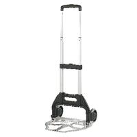 Lightweight aluminium with an extendable back and folding foot plate. Complete with elasticated load retaining straps. H1030x W390xD430. Folded H595xW390xD50mm. Capacity 50kg. Weight 3.2kg. Non returnable.