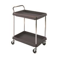 70mm deep ledge on shelves contains spillage and adjusts in 25mm increments. Impact resistant surface. Ergonomic handle. Designed for effortless manoeuvrability. Dimensions: H1041 x W832 x D546mm. 2 tier. Colour: Black. Non returnable.