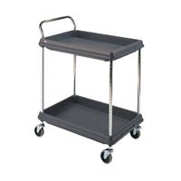 70mm deep ledge on shelves contains spillage and adjusts in 25mm increments. Impact resistant surface. Ergonomic handle. Designed for effortless manoeuvrability. Dimensions: H1041x W984 x D689mm. 2 tier. Colour: Black. Non returnable.