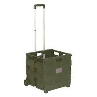 Durable moulded construction with rubber tyres for easy manoeuvrability. Folds up for compact storage. Easily sets up from folded position. W380 x D410 x H430mm. Colour - Black/Grey.