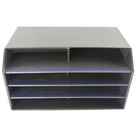 Q-Connect Mail Sorter a versatile 8-shelf literature sorter ideal for office post room and home use. Manufactured from corrugated board with clear Perspex shelf edge strips for added strength and finished in an attractive Black design. W495xD315xH280