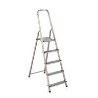 Large serrated platform and wide non-slip treads. 600mm safety rail and non-slip feet. Max. load: 150kg. Manufactured to EN131 for trade use and to GS standards. No. of treads: 5. Height to platform: 980mm. Non returnable.