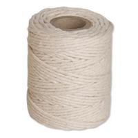 Twine for easy fastening. Durable and strong cotton. Designed not to fray Great for use with packages Easy to use with reliable results. 500 gram spool. Supplied in a pack of 6. Colour: White
