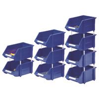 High strength polypropylene design. Bins can be joined together on three sides from the rear side and on top (clips and supports included). Label area for identification. Colour: Blue. W300 x D480 x H178mm. Non returnable.