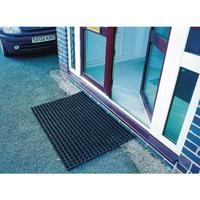 Hard wearing rubber matting for use in demanding conditions. Anti-slip matting remains flat and contours to floor surface. Provides excellent drainage. Holes allow debris to fall through. Size: 1000 x 1500mm. Thickness: 23mm. Non returnable.