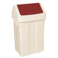 Colour coded lids for waste segregation. Capacity - 50 litres. H645 x W290 x D360mm. White Bin with Red Lid. Non returnable.