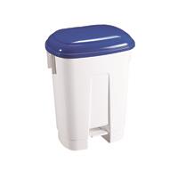 Shock resistant with rounded corners and smooth contours for easy cleaning. Coloured lids and optional divider (not included) encourages waste separation. 60 litre capacity. H680x. W500xD360mm. White/Blue. Non returnable.