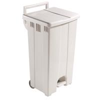 Easy lid opening via steel push rod. Ergonomic handle and big wheels. Shock resistant with rounded corners and smooth contours for easy cleaning. H920 x W510 x D465mm. Capacity 90 litre. Lid: Light Grey. Non returnable.