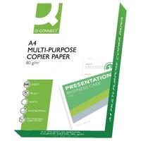 Q-Connect Copier Paper. 80gsm smooth White paper ideal for your everyday copier and laser printing needs. Size: A4. 500 sheets per ream. This product contains 5 reams.