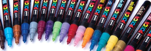 POSCA paint markers are excellent multi-surface, creative pens. The uni POSCA paint marker contains water-based pigment ink which is lightfast, water-resistant and will write on almost any surface. The POSCA markers are permanent markers on paper, card and wood and can be made permanent on various other surfaces including terracotta, porcelain, glass, textiles, metal, plastic and wood. These multi-use marker pens are available in a number of vibrant, opaque solid colours which can be mixed while the paint is wet and overlay colours on top of one another when they dry. Excellent for customisation, up-cycling, illustration, posters, fine art or sign-writing. Supplied in a pack of 8 pens in assorted colours.