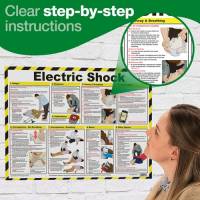 The kits are stocked with essential first aid supplies needed to treat an electrocuted casualty, including burn treatments. The rescue hook is designed to manoeuver someone who has received an electric shock and is suitable for installations of up to 45kV. The guidance poster provides useful information and clear step-by-step instructions on how to safely treat a victim of electrocution.