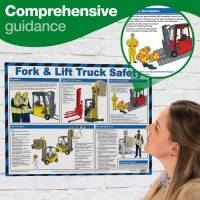 - This Fork & Lift Truck Safety Poster, A2 (Laminated) provides clear, easy-to-understand guidance on safe forklift operation. Designed for use in warehouses, construction sites, manufacturing facilities, and workshops, it serves as an essential visual aid for team inductions and daily safety reinforcement.