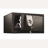 Master Lock X031ML security safe with 6 lever key lock. Features 2 live locking bolts carpeted floor and bolt down kit. Exterior dimensions: W290 x D264 x H167mm. Interior dimensions: W286 x D213 x H163mm. Colour - Black.