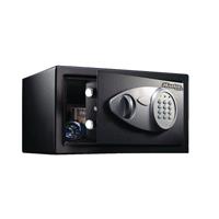 Security safe with electronic lock. Lock has an override key. Solid steel pry resistant door. Foam interior protects valuables. Supplied with hardware to bolt to the floor. Capacity of 11.6 litres.