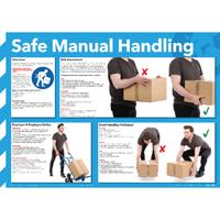 Safe Manual Handling poster. Raises awareness of health and safety in the workplace. Size: 420 x 594mm.