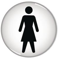 Unique domed sign with universal female symbol. Universally recognised symbol. Self adhesive backing - no need for tools. Diameter: 60mm. Black figure on white background. Pack of 1.