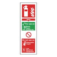 UKs leading sign manufacturer. Universal symbol. Professional and informative. Water fire extinguisher instructions. Self-adhesive vinyl. Size: 280x90mm.