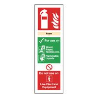 UKs leading sign manufacturer. Universal symbol. Professional and informative. Foam fire extinguisher instructions. Self-adhesive vinyl. Size: 300mm x 100mm.