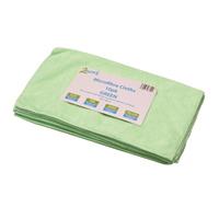 Hard-working cleaning cloths. Microfibre surface effectively cleans spills and dust. Clean dirt when moist without chemicals. Use dry to shine hard surfaces. Can be machine washed up to 300 times. 400 x 400mm. Pack of 10 cloths. Green.