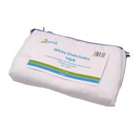 Dishcloths for catering use. Durable construction for long lasting use. Ideal for wiping kitchen surfaces. Also useful when washing up. Size: 300 x 400mm. Pack of 10 . Colour: White.