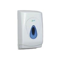 Dispenser for bulk pack toilet tissue. Makes it easy to replenish stock. Wall mountable for easy access. Wipes clean easily. Great for public toilets and washrooms. For use with 2Work and most standard bulk pack toilet tissue. Colour: White.