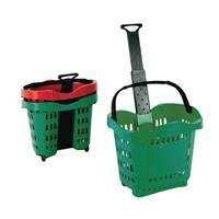Giant Shopping Basket/Trolley Green SBY20755. All plastic stackable rolling basket with unique telescopic handle and large easy grip pick up handle. Non returnable.